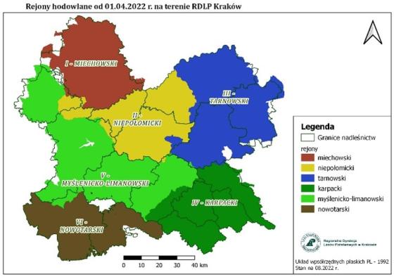 Na terenie RDLP w Krakowie zostało utworzonych 6 takich rejonów.